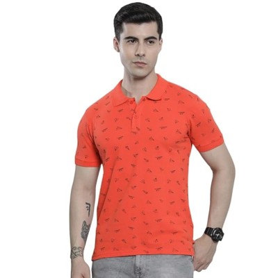 Men Cotton Slim Fit Printed Polo Collar Tshirt